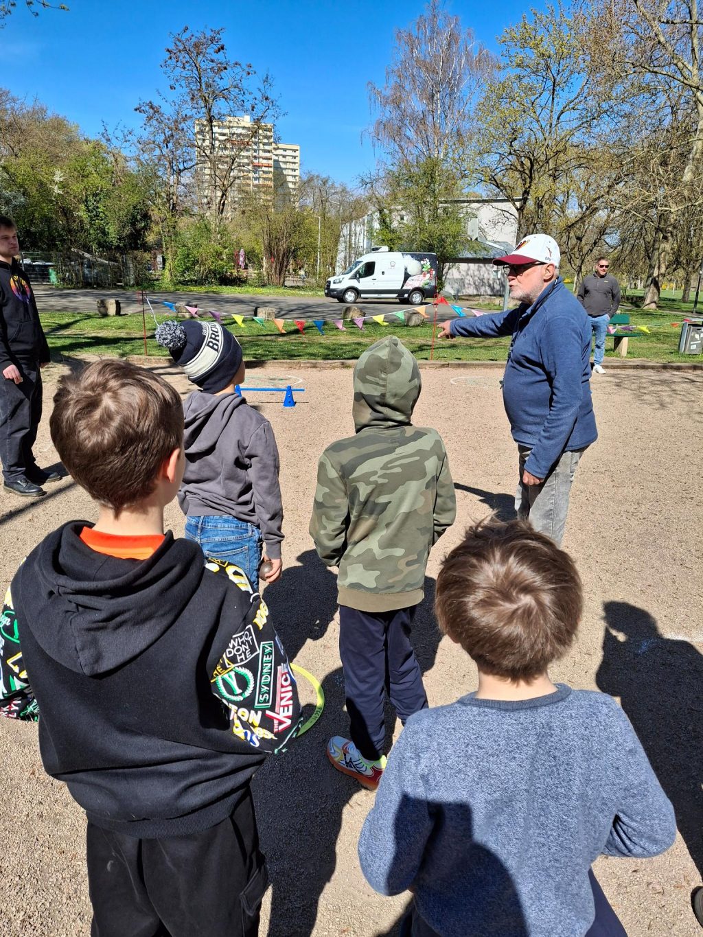 Am 2. April 2026 fand bei bestem Wetter ein „Schnuppertraining“ für 17 Kinder im Grundschulalter bei uns im PCCM Boulodrome Volkspark statt.