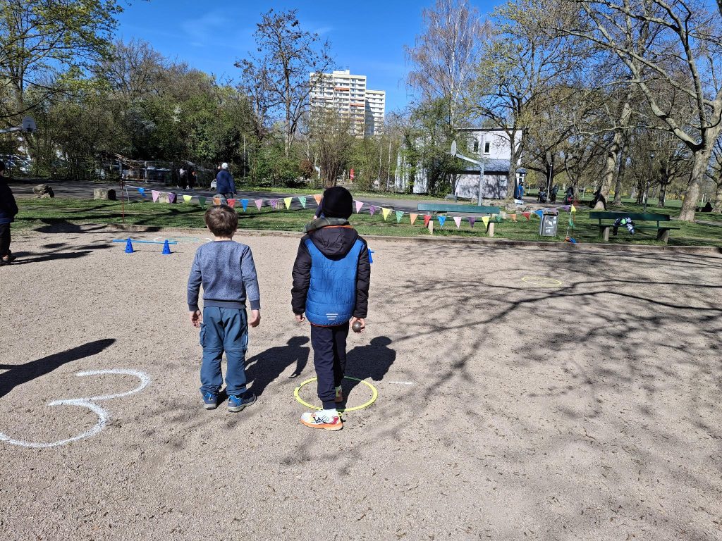 Daniel Merz, Leiter der offenen Kinder und Jugendarbeit der Ev. Kirchengemeinde Marienborn in Kooperation mit der Stadt Mainz, kam im Rahmen der Osterferienbetreuung auf die schöne Idee, unseren Verein anzusprechen – angeregt durch seinen Sohn, der im Grundschulalter während eines Frankreichurlaubs große Freude am abendlichen Pétanque-Spiel gefunden hatte.
