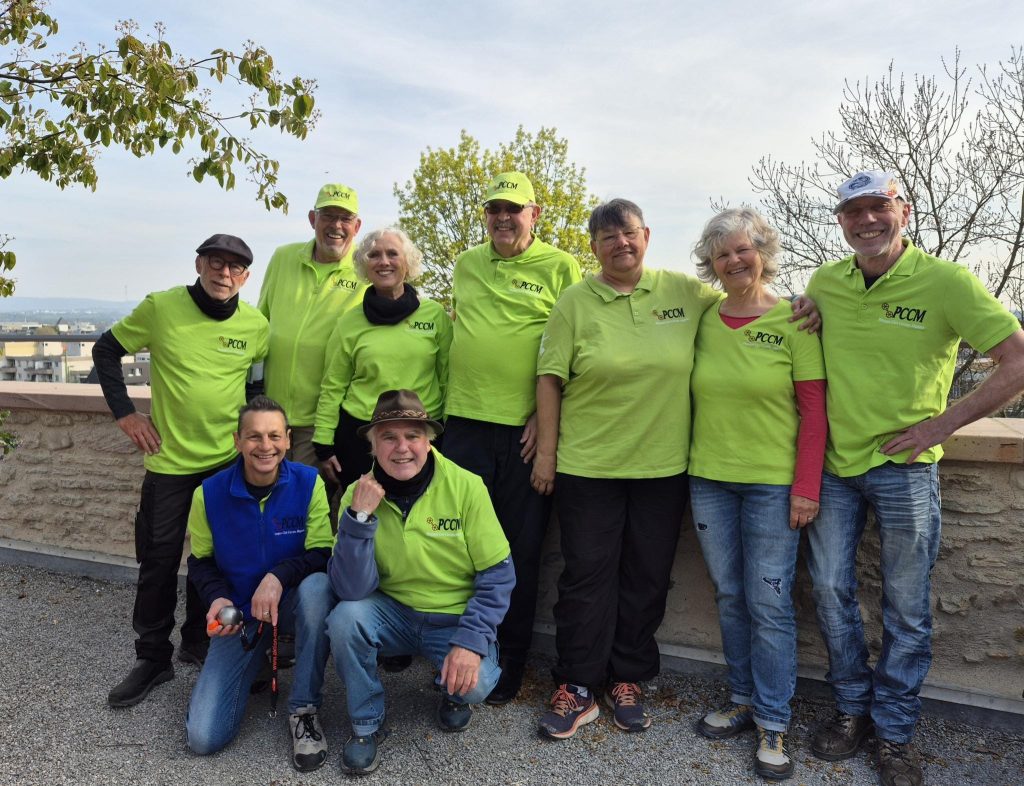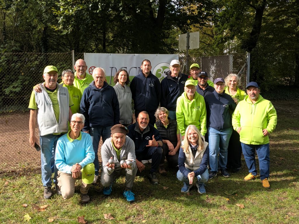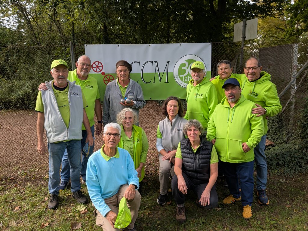 Der PCCM ist mit acht Spielern vertreten und erinnert mit seinen neuen grünen Trikots an eine Gruppe vergnügter Laubfrösche. Aber die Frösche können spielen! Naturtalent Sabine gewann all ihre Partien, auch die anderen hielten sich auf dem Budenheimer Bouleplatz, der bekannterweise nicht leicht zu spielen ist, gut. Vier Spiele gewonnen, zwei zu 12 verloren…das ist gutes Mittelfeld. Die von Axel spendierte Pastisrunde erwärmte zum Abschluss nochmal Körper und Seele.