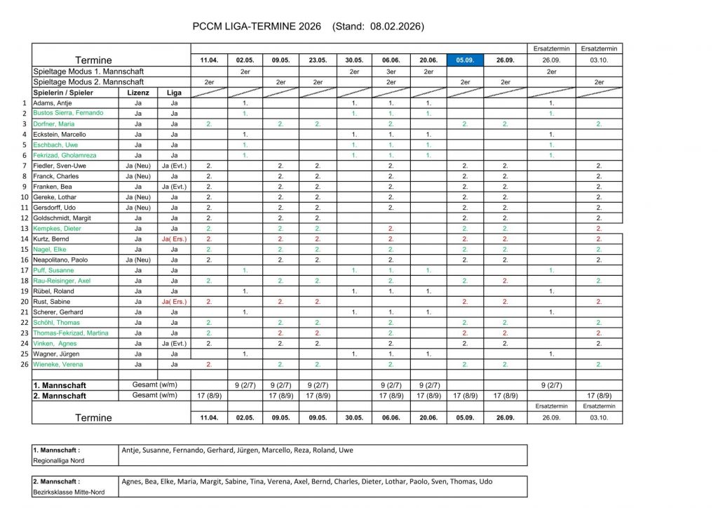 Beginn der Ligasaison für die zweite Mannschaft des PCCM
