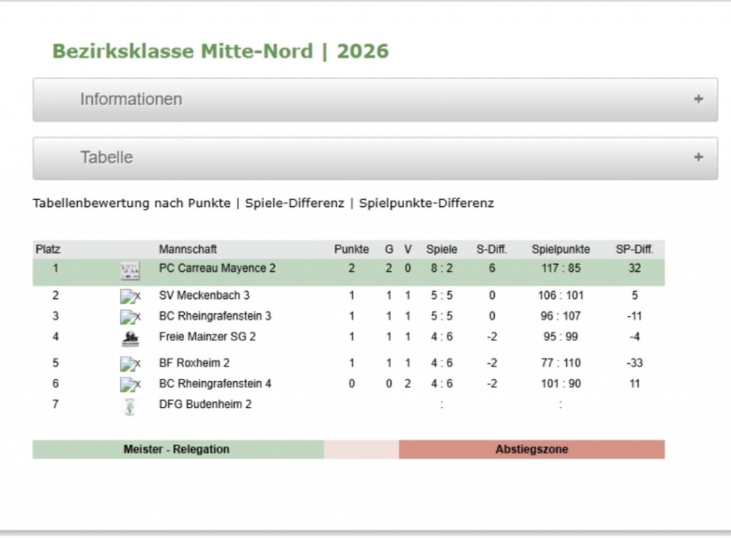 Wir beginnen neuformiert in der Bezirksklasse Mitte-Nord mit dem nachfolgenden Spielplan des PVRLP: